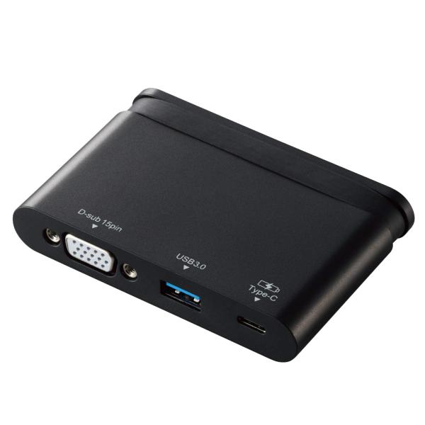USB Type-C(TM)コネクターでパソコンに接続し、パソコンを充電しながら、USB3.0機器やVGAディスプレイを接続できるドッキングステーションです。