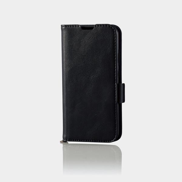 ELECOM AQUOS R2 compact SH-M09 ソフトレザーカバー 磁石付 ブラック 横開きタイプのフラップ付 カードポケット付 スタンド機能付 PM-AQR2CPLFYBK