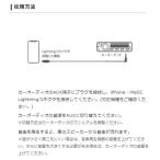 - iPhone・iPadの音楽を車で楽しめる。 iPhoneやiPadなどのLightningコネクタ搭載機器とカーオーディオを接続し、手軽に音楽を楽しめる車載用AUXオーディオケーブル。■iPhoneやiPadなどのLightningコネクタ搭載機器と、カーオーディオのAUX端子を接続することで、手軽に音楽を楽しめる車載用オーディオケーブルです。■耐熱素材を採用しており、高温になる車内でも安心してご使用いただけます。■接触抵抗が小さく、経年劣化によるサビなどに強い金メッキ仕上げの端子です。■信号劣化の少ないOFC99.99%(無酸素銅)ケーブルを採用しています。信号の歪みや伝送ロスを抑えることができ、キレのある音質を再現できます。■Appleの正規ライセンス「MadeforiPhone/iPad」を取得した製品です。アップデートにも対応しているので、安心してお使いいただけます。■未接続時にケーブルを固定できるケーブルホルダーが付属しています。ケーブルホルダーは付属の両面テープでお好みの場所に取り付け可能です。■iPhoneやiPadのケースに干渉しにくい小型コネクタを採用しています。■iPhoneなどの機器接続側には、厚みのあるケースなどを装着していても接続できるストレートプラグを採用しています。■スピーカーなどへの接続側には、コンパクトに接続できるL型プラグを採用しています。■パウダーを混ぜた特殊光沢塗装で、高級感のある外観に仕上げています。■対応機種:φ3.5mmステレオミニジャック搭載のカーナビ・カーステレオおよびLightningコネクタ搭載のiPhone・iPad・iPodなど■コネクタ形状1:φ3.5mm3極ミニプラグ(L型)■コネクタ形状2:Lightningオス(ストレート)■プラグメッキ仕様:金メッキ■カラー:ブラック■長さ:1.0m■環境配慮事項:EURoHS指令準拠iPhone・iPadの音楽を車で楽しめる。 iPhoneやiPadなどのLightningコネクタ搭載機器とカーオーディオを接続し、手軽に音楽を楽しめる車載用AUXオーディオケーブル。
