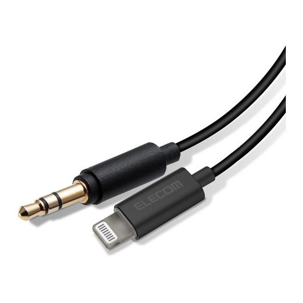 - -------------------------------------------------------------- 画像はイメージです。 ※ PC環境により実際の色味や質感と異なって表示される場合がございます。 ※ 部品・パーツなどの一部の商品では本体の商品画像を使用しております。 ※ 製品の仕様・画像・パッケージは、メーカー側から予告なく変更される場合があります。 -------------------------------------------------------------- iPhoneやiPadの音楽をスピーカーや車などで楽しめる。iPhoneやiPadなどのLightningコネクタ搭載機器の音楽をスピーカーやカーステレオで再生するLightning-φ3.5変換AUXケーブル。■ iPhoneやiPadなどのLightningコネクタ搭載機器と、スピーカーやコンポ、カーステレオ、Bluetooth(R)スピーカーφ3.5 AUX INポートを接続することで、手軽に音楽を楽しめるLightning-φ3.5変換AUXケーブルです。■ 目立たず配線や収納がしやすい、直径1.8mmのスリムケーブルです。■ 目立たず、スマートフォンや音楽プレーヤーのケースに干渉しにくいコンパクトなコネクタを採用しています。■ 厚みのあるケースなどを装着していても接続できるストレートプラグを採用しています。■ 信号劣化の少ないOFC99.99%(無酸素銅)ケーブルを採用しています。信号の歪みや伝送ロスを抑えることができ、キレのある音質を再現できます。■ 接触抵抗が小さく、経年劣化によるサビなどに強い金メッキ仕上げの端子です。■ Appleの正規ライセンス「Made for iPhone/iPad」を取得した製品です。アップデートにも対応しているので、安心してお使いいただけます。■ パウダーを混ぜた特殊光沢塗装で、高級感のある外観に仕上げています。【仕様】対応機種:φ3.5mmステレオミニジャック搭載のスピーカー・ヘッドフォン・カーナビ・カーステレオおよびLightningコネクタ搭載のiPhone・iPad・iPodなどコネクタ形状1:φ3.5mm 3極ミニプラグ(ストレート)コネクタ形状2:Lightningオス(ストレート)プラグメッキ仕様:金メッキカラー:ブラック長さ:1.0m環境配慮事項:EU RoHS指令準拠 【メーカー・ブランド】 エレコム / えれこむ / ELECOM 【#1】