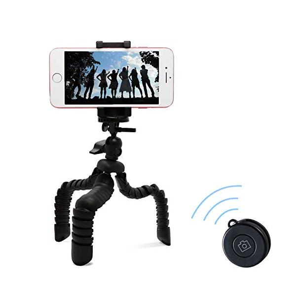 ・変形自在で設置場所を選ばない、フレキシブルタイプでワイヤレスリモコンボタン付のスマートフォン用三脚です。
