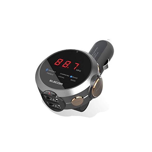 エレコム FM トランスミッター 重低音モード イコライザー付 Bluetooth USB×2ポート 2.4A おまかせ充電 ブラック LAT-