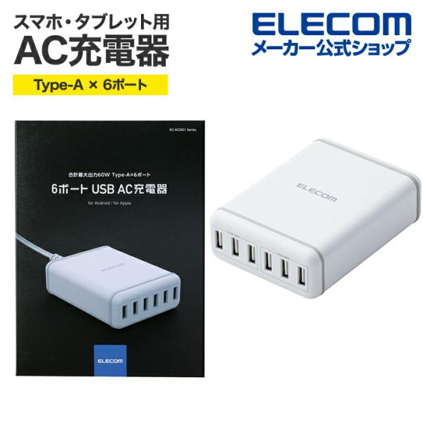 エレコム スマートフォン・タブレット 用 AC充電器 Type-A 6ポート AC充電器 スマホ タブレット AC 充電器 USB-A 6ポート ホワイト┃EC-ACD01WH
