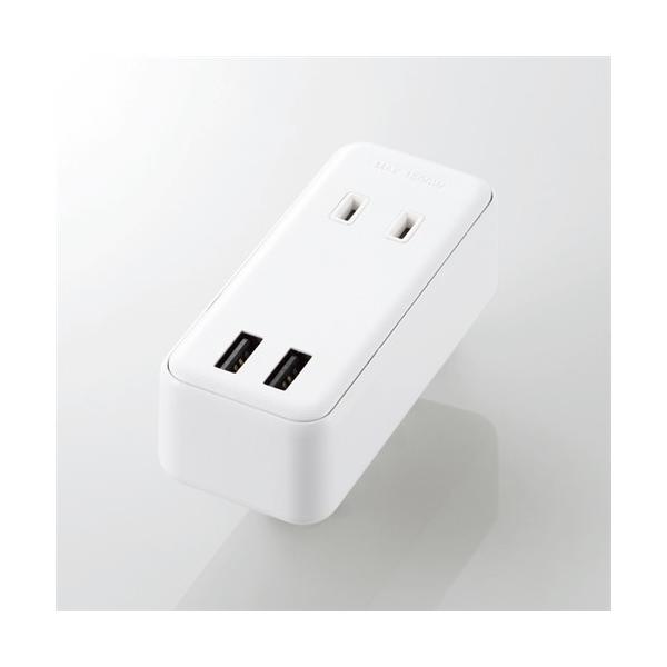 エレコム MOT-U07-22WH モバイルUSBタップ(直差し/2口+2ポート) ホワイト