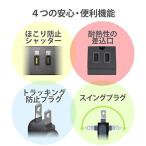 ・未使用時にほこりの侵入を防止する「ほこり防止シャッター」を装備した電源タップです。