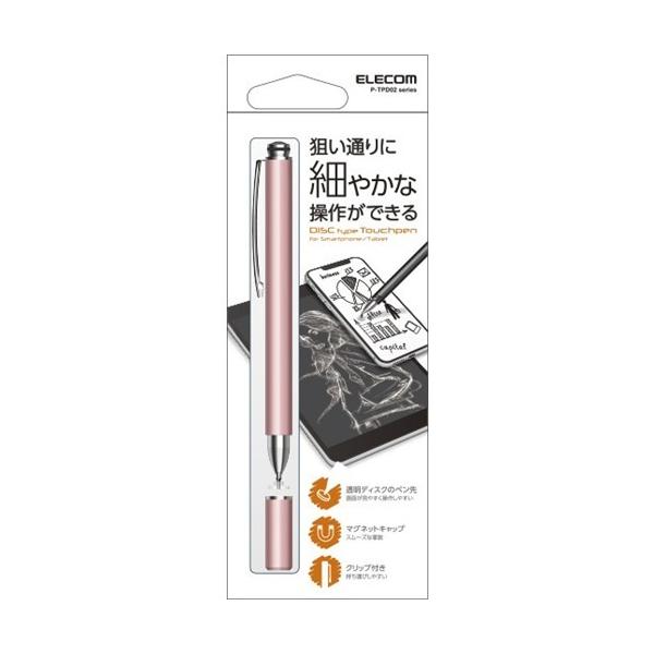 - エレコム P-TPD02PN スマートフォン・タブレット用タッチペン ディスクタイプ ピンク●透明なディスクタイプのペン先で狙い通りに細やかな操作ができるタッチペン透明なディスクタイプのペン先により、狙い通りに細やかな操作ができるタッチペンです。●液晶画面を汚さずに操作可能指先でのタッチ操作と違い、液晶画面を汚さずに操作可能です。●スライド、スワイプ操作も快適タッチ操作はもちろん、スライド、スワイプ操作も快適に行えます。●ディスクタイプのペン先ディスクタイプのペン先は、ディスクが透明でタッチしているポイントが見やすく、細かな操作が可能です。●持ち運びに便利なクリップ付き胸ポケットなどに入れて持ち運ぶのに便利なクリップが付いています。●摩擦やホコリの侵入を防ぐキャップ付きペン先への摩擦や、ホコリの侵入などダメージ防ぐキャップが付いています。キャップはスムーズな着脱ができるマグネットタイプです。※液晶保護フィルムをご使用の際は、フィルムの種類によっては、操作時にこすれ音が生じたり、ペンの反応が悪くなることがあります。【仕様】対応機種:各種スマートフォン・タブレット外形寸法:長さ約127mm×ペン径約9mm、ペン先約7mm材質:(ペン先)ポリカーボネート、(本体)アルミニウム