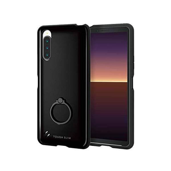 エレコム Xperia 10 II ケース TOUGH SLIM 耐衝撃×薄軽×リング [エアークッションで衝撃吸収] フィンガーリング付 ブラ