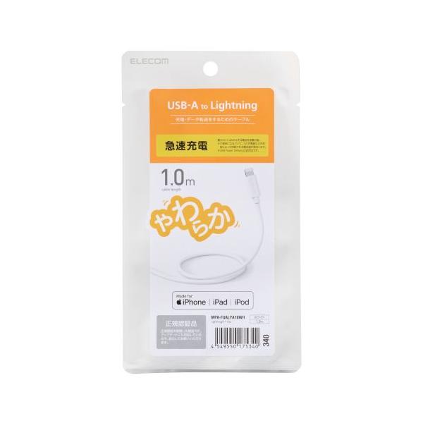 - 【Lightningケーブル ヤワラカ 1.0m ホワイト】 検索キーワード:エレコム|ELECOM モバイルアクセサリー|各種ケーブル(モバイル) メーカー型番:MPA-FUALYA10WH MPAFUALYA10WH
