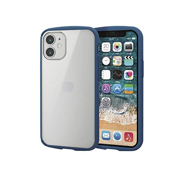 エレコム iPhone 12 mini ケース Qi充電対応 ハイブリッド 耐衝撃 TOUGHSLIM LITE フレームカラー ネイビー PM