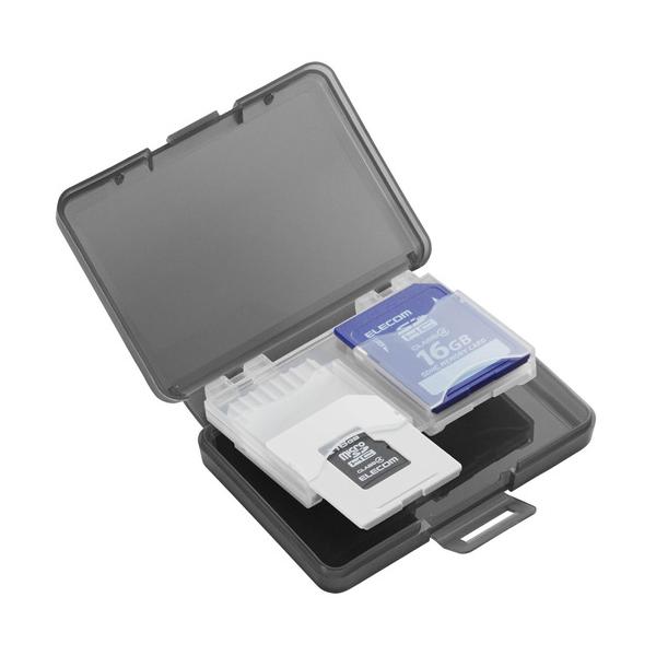 - お店TOP>家電>記録メディア・メモリーカード>データ記録メディア>メモリーカード・メディアケース>エレコム SDケース 4枚収納 (SDカード1枚+マイクロSDカード3枚) インデックスラベル (1個)【エレコム SDケース 4枚収納 (SDカード1枚+マイクロSDカード3枚) インデックスラベルの商品詳細】●SDカードあるいはmicroSDカードを合計4枚、まとめて収納可能です。●microSDカードトレーが3枚付属していますので、変換アダプタを使うことなくmicroSDを収納できます。トレー1枚に付きmicroSD1枚が収納可能です。●増えていくSDカード、microSDカードをまとめて収納・管理するのに便利です。●microSDカードトレーをスロットから取り外すことでSDカードを収納できます。また、変換アダプタも収納可能です。●保存しているデータを確認するのに便利なインデックスラベルが付いています。●SDカードに貼り付けられるナンバーラベルが付いています。●インデックスラベル、ナンバーラベルのナンバリングを連動させることで、複数のSDカードを使用していてもデータ内容をきちんと管理できます。●ケースをしっかりと閉じることができるストッパーが付いています。【規格概要】型番:CMC-06NMC4外形寸法:幅64.2mm*奥行10.8mm*高さ46.5mm材質:ケース/ホルダー部:ポリプロピレン、microSD用トレー:ABS樹脂、インデックスラベル:紙収納枚数:SDメモリーカード4枚、またはmicroSDメモリーカード3枚+SDメモリーカード1枚カラー:ブラック付属品:インデックスラベル*1枚、microSD用トレー*3枚【原産国】中国【発売元、製造元、輸入元又は販売元】エレコムリニューアルに伴い、パッケージ・内容等予告なく変更する場合がございます。予めご了承ください。エレコム541-8765 大阪市中央区伏見町4丁目1番1号 9F0570-084-465広告文責:楽天グループ株式会社電話:050-5577-5043[情報家電]