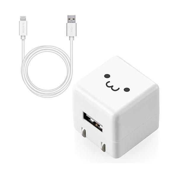 - ■家庭用コンセントからLightningコネクタ搭載のiPhoneやiPad、iPodを充電できるLightningケーブルを付属したAC充電器です。 付属のLightningケーブルは、充電だけでなくパソコンとのデータ通信にも使用可能です。ケーブル長は1.5m、かわいい顔つきの“しろちゃん”モデルです。■家庭用コンセントからLightningコネクタ搭載のiPhoneやiPodを充電できるLightningケーブルを付属したAC充電器です。 ■携帯に便利なコンパクト設計のかわいいキューブ型デザインを採用しています。 ■スマートフォンやタブレットに付属もしくは対応する充電用USBケーブルを使用して充電可能です。 ■付属のLightningケーブルは、充電だけでなくパソコンとのデータ通信にも使用可能です。 ■壁面のコンセントに接続してもゆとりのあるケーブル長1.5mを採用しています。 ■コンパクトサイズでありながら、未使用時は電源プラグを折りたたんで充電器本体に収納できるので持ち運びに便利です。 ■※端末本体や充電器が濡れた状態で充電すると、異常な発熱・焼損の原因となり大変危険ですのでおやめください。■対応機種:USB Type-Aポートから5W(5V/1A)までの出力で充電、使用可能な機器■コネクタ形状:USB Type-A(メス)×1■定格入力電圧:AC100-240V 50/60Hz■定格入力電流:0.2A■定格出力電力:5W■定格出力電圧:5V■定格出力電流:1A■外形寸法:約 幅30mm×厚み30mm×高さ30mm ※ACプラグ収納時■重量:約70g■ケーブル長:約1.5m■カラー:ホワイトフェイス■コンセントプラグ仕様:90度スイング構造/耐トラッキングスリーブ付■付属品:USB Type-Aオス-Lightningコネクタケーブル(データ通信にも対応)■認証:MFi■法令:◇PSE 特定電気用品■使用可能地域:日本■保証期間:1年■その他:コンパクトでかわいいキューブ型エレコムダイレクトショップ家庭用コンセントからLightningコネクタ搭載のiPhoneやiPad、iPodを充電できるLightningケーブルを付属したAC充電器です。 付属のLightningケーブルは、充電だけでなくパソコンとのデータ通信にも使用可能です。ケーブル長は1.5m、かわいい顔つきの“しろちゃん”モデルです。Lightningケーブルを付属したAC充電器家庭用コンセントからLightningコネクタ搭載のiPhoneやiPodを充電できるLightningケーブルを付属したAC充電器です。かわいいキューブ型デザイン携帯に便利なコンパクト設計のかわいいキューブ型デザインを採用しています。充電用USBケーブルを使用して充電可能スマートフォンやタブレットに付属もしくは対応する充電用USBケーブルを使用して充電可能です。付属ケーブルはデータ通信にも使用可能付属のLightningケーブルは、充電だけでなくパソコンとのデータ通信にも使用可能です。ケーブル長は1.5m壁面のコンセントに接続してもゆとりのあるケーブル長1.5mを採用しています。電源プラグを折りたためるコンパクトサイズでありながら、未使用時は電源プラグを折りたたんで充電器本体に収納できるので持ち運びに便利です。※端末本体や充電器が濡れた状態で充電すると、異常な発熱・焼損の原因となり大変危険ですのでおやめください。接続図