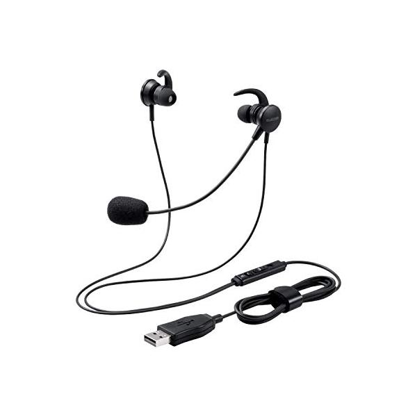エレコムEEOM ヘッドセット マイクアーム付 B インナーイヤー 有線 両耳 ブラック HE15UBK