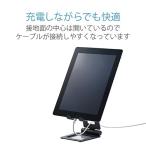 - ■2箇所のヒンジで角度と高さの調整ができ、設置しているタブレットに充電ケーブルを装着できる、フリーアングルスタイルのタブレット用アルミスタンドです。 ■折りたたんでコンパクトに収納可能です。 ■インテリアになじむ、シンプルで美しく高級感のあるアルミ仕上げです。 ■およそ5.0〜12.9インチのスマートフォン、タブレットに対応しています。 ■ホルダー部は自由に角度調整ができるフリーアングルタイプで、Web閲覧や動画視聴などシーンに合わせてお好きな角度で使用できます。 ■ホルダー部の受け部分は中心が開いており充電ケーブルを接続しやすくしています。 ■ホルダー部は約16mmのマチ幅があるため薄いケースであれば装着したままスタンドに設置することができます。 ■スタンド底面には、滑りにくく安定して設置できるシリコンパーツが付いています。 ■スタンドアーム部のケーブルホールにケーブルを通すことができ、ケーブルがキレイに配置できます。 ■本製品の構造上、対応サイズでもバランスの悪い場合はスタンド状態を維持することができない場合がありますのでご了承ください。