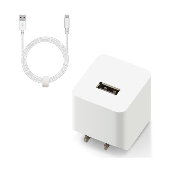 - エレコム MPA-ACL09WH LightningAC充電器 2.4A出力 ケーブル同梱 1.5m 高耐久ケーブル ホワイト 500