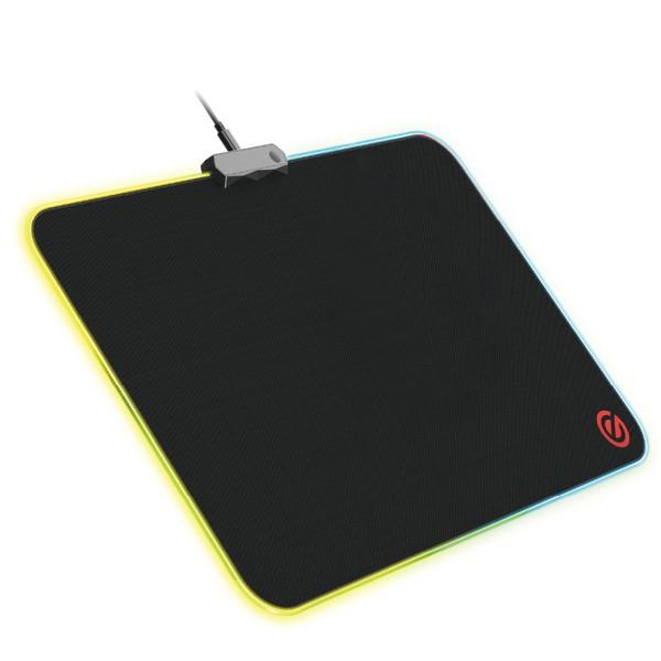 - 10種類の点灯パターンでデスクを彩る。ゲーミングマウスの繊細な操作を実現する中目クロスを採用し、重厚感のあるゲーミングマウスでもスムースな動きを実現するゲーミングマウスパッド。<br>「ゲーミングマウスパッド(光る/中目クロス/ワイド)」