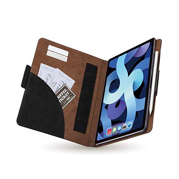 フリーポケットとカードポケット、ペンホルダー、ハンドホールドベルトを備えて日常での使いやすさを向上させた、ツートンデザインのiPad Air10.9インチ(第4世代)用ソフトレザーケースです。