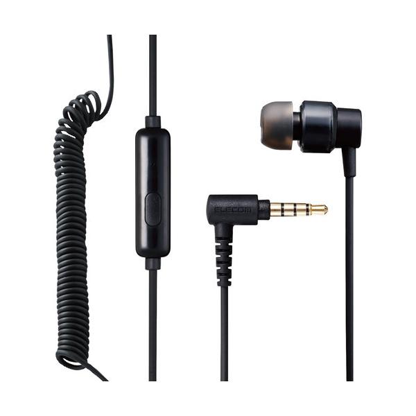 エレコム EHP-CCS100CMMBK モノラルイヤホン カナル型 マイク付 Fast Music φ9.2mmドライバ カールケーブル ブラック
