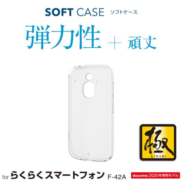 強じんな耐久性としなやかな弾力性を合わせ持ったTPU(熱可塑性ポリウレタン)素材を使用した、本体デザインが美しく際立つらくらくスマートフォン(F-42A)、らくらくスマートフォンme(F-01L)用ソフトケースです。
