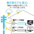 パソコンやテレビなどの接続機器を誘導雷による雷サージから守る雷サージ吸収素子や、待機電力を節約する差込口毎のスイッチを搭載した6個口タップです。