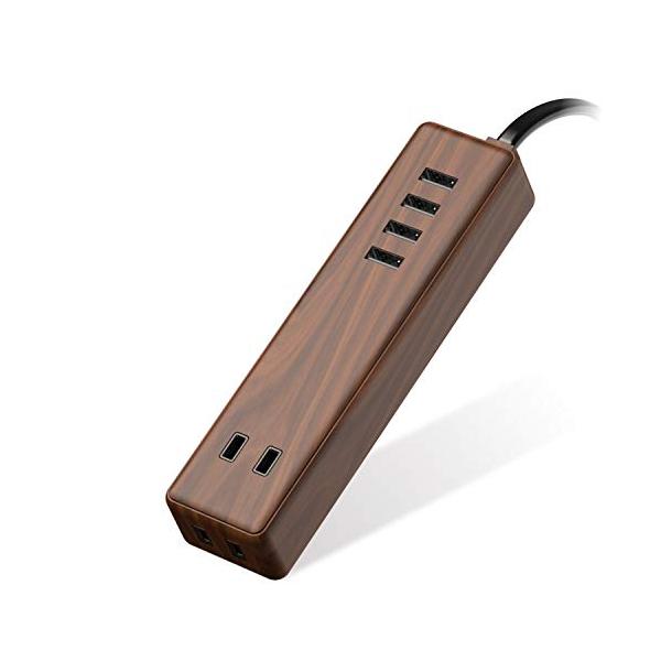 (1) 電源タップ単品・ウォールナット USB-A×4 & 2個口 ECT-0415W