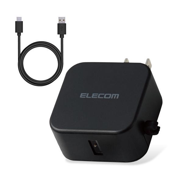 - エレコム MPA-ACC23BK AC充電器 スマホ・タブレット用 2.4A出力 Type-C USB-C ケーブル同梱 1.5m USB-Aメス1ポート ブラック 500