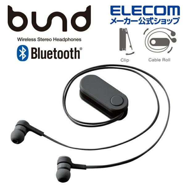 エレコム ワイヤレス イヤホン Bluetooth SBC 巻取り bund ブルートゥース 巻き取りタイプ クリップ付き スモークブラック LBT-HPC17BK 在庫処分