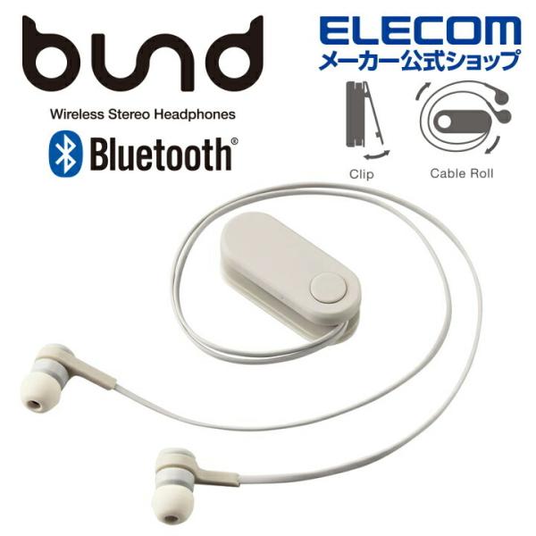 エレコム ワイヤレス イヤホン Bluetooth SBC 巻取り bund ブルートゥース 巻き取りタイプ クリップ付き ストーンホワイト LBT-HPC17WH 在庫処分