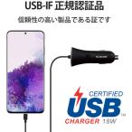 エレコム MPA-CCCPD01BK カーチャージャー Type-C USB-C PD認証 ストレートタイプ 1.5m 18W インジケーター搭載 ブラック