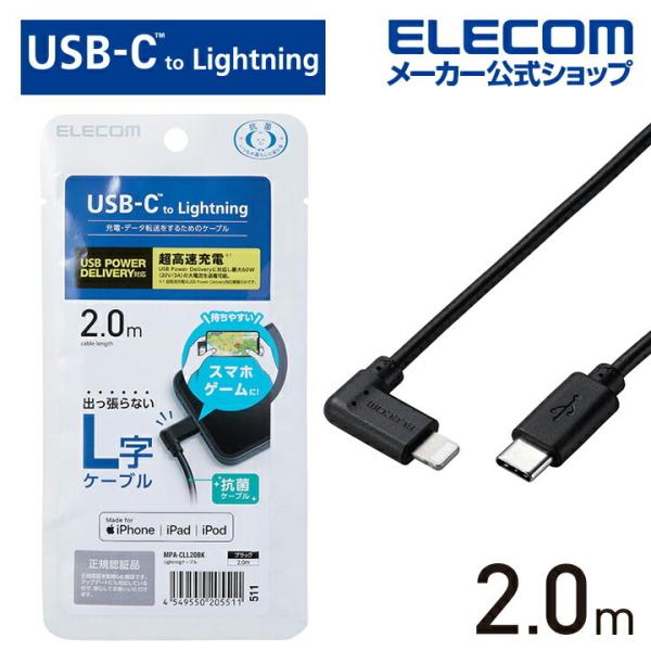 USB Type-C - Lightning ケーブル L型 Lightningケーブル タイプC - ライトニングケーブル USB Power Delivery対応 ブラック┃MPA-CLL20BK エレコム 在庫処分