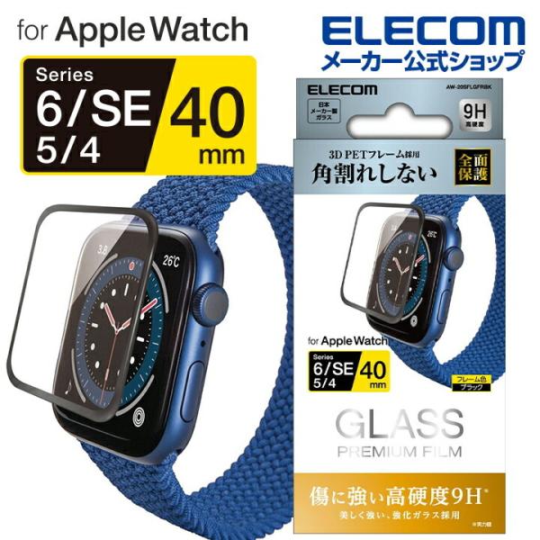 AppleWatch SE / Series6 [ 40mm ] ガラスフィルム フレーム付 光沢 耐水 アップルウォッチ SE / シリーズ6 ブラック┃AW-20SFLGFRBK エレコム 在庫処分