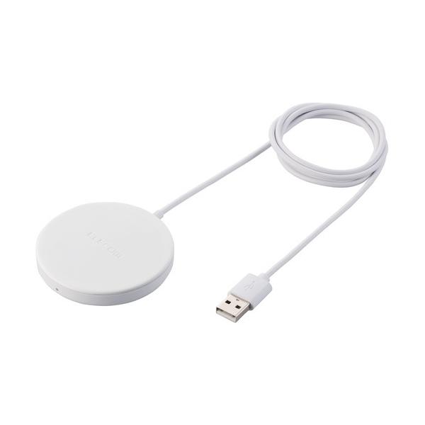 - エレコム W-MA01WH ワイヤレス充電器 マグネット内蔵 5W 卓上 ケーブル一体 1m ホワイト 500
