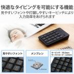 - エレコム TK-TBM023SKBK テンキー ワイヤレス 無線 Bluetooth 抗菌 静音 メンブレン ブラック ●音が気になる場所や時間帯での使用に最適なBluetooth(R)静音テンキーパッドです。●各キートップに装着したシリコンラバーによって従来品と比べて打鍵音を9割以上低減。公共施設や会議室、夜中や朝方など音が気になる場所や時間帯での使用に最適です。 ※1※1 本製品(約15dB)と従来モデルTK-FCM062BK(約45dB)の打鍵音の音圧レベルから算出した音エネルギーの大きさを比較した結果です。音エネルギーとは、測定した音圧レベル(ベル値)と基準値(人間が聞き取れる最小の音の大きさ)から算出した値です。●独自のファームウェアを搭載することにより、Windows、Chrome OS、macOSで使用可能です。●誤って水などの液体をキーボード上にこぼしても、本体裏面の水抜き穴からすぐに液体を排出できる排水機構を搭載しています。(防水設計ではありません) 【仕様】接続方式:Bluetooth(R)無線方式対応機種:Bluetooth(R)HOGPプロファイルに対応したWindows OS、macOS、Chrome OS搭載機対応OS:Windows 11、Windows 10、Windows 8.1、 macOS Big sur (11)、 Chrome OS ※各OSの最新バージョンへのアップデートや、サービスパックのインストールが必要になる場合があります。 ※最新情報は対応表をご確認ください。カラー:ブラック通信方式:GFSK方式電波周波数:2.4GHz帯接続可能台数:1台のみ電波到達距離:磁性体(鉄の机など)の上で使用する場合:約3m、非磁性体(木の机など)の上で使用する場合:約10m ※当社環境でのテスト値であり保証値ではありません。キータイプ:メンブレンキー配列:20キーキーピッチ:19mmキーストローク:2mm電源(キーボード本体):単4形アルカリ乾電池、単4形マンガン乾電池、単4形ニッケル水素2次電池のいずれか1本想定電池使用期間:アルカリ乾電池使用時の目安 10ヵ月 ※1日8時間のパソコン操作を想定外形寸法(幅×奥行×高さ):89.3×135.3×26.6mm質量(キーボード本体):約80g ※電池含まず付属品:動作確認用単4形アルカリ乾電池×1保証期間:1年