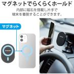 - MagSafe対応iPhoneをマグネットで保持できる、ゲル吸盤取り付けタイプの車載ホルダーです。MagSafe対応iPhoneをマグネットで保持できる、ゲル吸盤取り付けタイプの車載ホルダーです。 MagSafe対応iPhoneに内蔵されているマグネットと同じ形状でマグネットを配置しているので、端末をピッタリ保持することが可能です。 浅めのシボであればホルダーをしっかり吸着固定することができる強力ゲル吸盤タイプです。 ※吸盤の吸着力が弱まってきた場合、水洗いすることで吸着力が回復します。 シボが深めのダッシュボードなどへの吸盤設置を補助する設置補助板が付いています。 ボールジョイントを採用していますので、360度回転や自由な角度に調整し、固定することができます。 スマートフォン設置部分に、本体を傷つけにくいラバー素材を使用しています。最大外形寸法:幅68mm×奥行77mm×高さ147mm(展開方法による) 重量:127g 付属品:設置補助板×1、アルコールパッド×1 対応機種:MagSafe対応iPhone※重量:約270g以下(ケースなどのアクセサリ含む) 材質:ポリカーボネート/シリコン/鉄/ネオジウム磁石/TPE/バネ鋼 カラー:ブラック その他:ゲル吸盤取付。検索キーワード:ELECOM | えれこむ | モバイルアクセサリー |