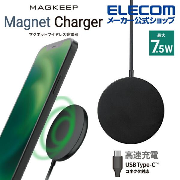 エレコム ワイヤレス充電器 マグネット 内蔵 ケーブル 一体 ワイヤレス充電器 マグネット内蔵 7.5W 卓上 1m ブラック W-MA02BK 在庫処分