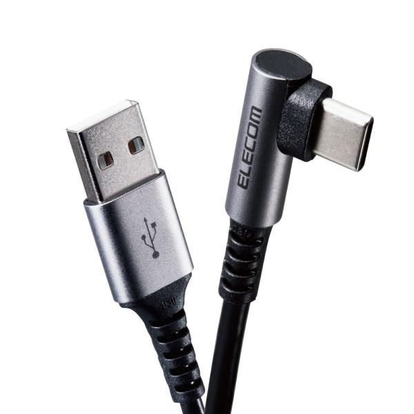 エレコム USB(A-C)ケーブル スマホ用 認証品 L字コネクタ 抗菌・抗ウイルス 2.0m(ブラック) MPA-ACL20NBK2 返品種別A