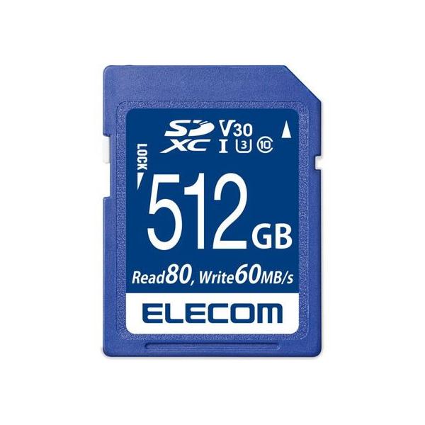 - 【商品説明】高速インターフェース規格であるUHS−I/UHSスピードクラスの「Class3」/ビデオスピードクラスV30、および読み書き時の最低速度を保証するSDスピードクラスの「class10」に対応したSDカードです。 UHS−I非対応機器で使用する場合は、SDスピードクラスの「class10」に対応します。対応機器で使用することで本来の性能を発揮します。【仕様】●メモリ規格:SDXC●スピードクラス:Class10、UHS−I、U3、V30●インターフェイス:SD●メモリ容量:512GB●最大転送速度:読み出し/80MB/s、書き込み/60MB/s●最低保証速度:30MB/s(※UHS−I対応機器使用時)●外形寸法:幅24.0mm×奥行2.1mm×高さ32.0mm●重量:約2.0g●保証期間:1年(データ復旧サービス含む)