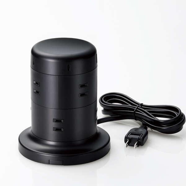 エレコム 電源タップ コンセント×8個口 (USB-C×2 USB-A×3) 45W タワー型 ブラック
