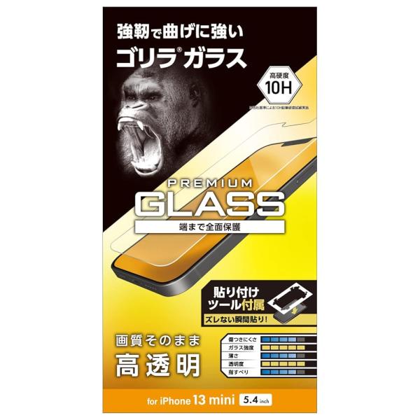- 詳しくは「商品の仕様」「商品の説明」をご確認ください。 なめらかな指滑りを実現するリアルガラスを採用。Gorilla(R)ガラスを採用した薄型タイプのiPhone13mini用液晶保護ガラスです。 端末の液晶画面と同じ、強靱なGorilla(R)ガラスを採用しています。 高精細液晶を損ねない高い透明度を実現します。 表面硬度10Hの強化ガラス採用により、保護ガラス表面のキズを防止します。※当社基準による10H鉛筆硬度試験での実力値です。 付属品:液晶保護ガラス(Gorilla(R)ガラス)x1、ホコリ取りシールx1、クリーニングクロスx1、貼り付けキットx1