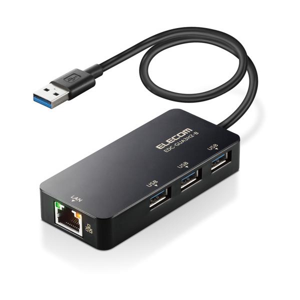 エレコム EDC-GUA3H2-B LANアダプター 有線 タイプA Giga USBハブ付 (USB-A×3【Windows Mac対応】 ブラック