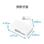 - ■持ち運びや収納に便利なケーブル収納タイプで、42種類のメディアに対応したUSB2.0カードリーダーです。 ■アダプターを使用せずに37種類の多彩なメディアを読み書きでき、アダプターを使用することでさらに5種類のメディアを読み書き可能です。 ■取り出しやすく、収納しやすいコネクター形状を採用しています。 ■パソコン接続時に余裕のある長さ約6cmのケーブルを搭載しています。 ■SDメモリーカードシリーズ、microSDメモリーカードシリーズ、コンパクトフラッシュに対応しています。 ■SDXCメモリカードやSDHCメモリカードなどの高速版のメディアに対応していますので、大容量データも素早く移動・コピーすることができます。 ■携帯電話やスマートフォンの多くに採用されているmicroSDカードも、アダプターなしでそのまま挿し込み可能です。 ■メディアへのアクセス状態が分かるアクセスランプを装備しています。 ■外部電源を必要としないUSBバスパワー駆動です。 ■専用ドライバなどのインストール作業が不要で、パソコンのUSBポートに接続するだけですぐに使用可能です。 ■SDカードロック機能はサポートしておりません。 ■著作権保護機能には対応しておりません。 ■複数メディアの同時接続はできません。■インターフェイス:USB2.0/USB1.1 ■最大転送速度:USB2.0ハイスピード/480Mbps(理論値) ■コネクタ形状:USB2.0 Standard-A ■スロット数:3 ■対応メディア(SDメモリカード):SD、SD(HighSpeed,ProHighSpeed,Class2・4・6・10)、Wii・DSi用、SDHC(Class2・4・6・10,UHS-I,UHS-II※1)、SDXC(Class10,UHS-I)、miniSD※2、miniSDHC (Class2・4・6)※2 ■対応メディア(SDメモリカード):TransFlash、microSD、microSDHC(Class2・4・6・10,UHS-I)、microSDXC(UHS-I)、 ※1)読み出し・書き出し時のデータ転送速度はSDHCメモリカードUHS-Iでの速度になります、※2)別途専用アダプター必要 ■対応メディア(マルチメディアカード):MMC、MMC4.0、セキュアMMC、RS-MMC、RS-MMC4.0/MMC micro※、 ※)別途専用アダプター必要 ■対応メディア(コンパクトフラッシュ):コンパクトフラッシュ(TypeI)(3.3V)、コンパクトフラッシュ(Type)(3.3V)、コンパクトフラッシュ(UDMA対応)、マイクロドライブ ■対応OS(Windows):Windows 11/Windows 10 ■対応OS(mac):macOS Monterey 12/macOS Big Sur 11.0/macOS Catalina 10.15 ■対応OS 備考:※各OSの最新バージョンへのアップデートや、サービスパックのインストールが必要になる場合があります。 ■カラー:ホワイト ■外形寸法:幅約45mm×奥行約77mm×高さ約15mm ■ケーブル長:約6cm(コネクター含まず) ■動作環境:温度5〜40℃、湿度30〜80%(結露なきこと) ■保証期間:1年持ち運びや収納に便利なケーブル収納タイプで、42種類のメディアに対応したUSB2.0カードリーダーです。