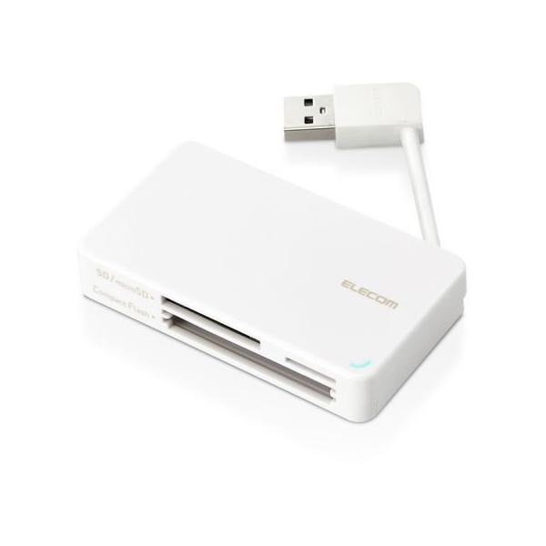 【お取り寄せ】エレコム カードリーダー USB2.0 ケーブル収納タイプ ホワイト カードリーダー バーコードリーダー PC周辺機器 パソコン 家電