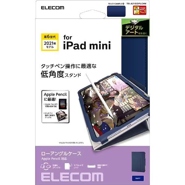 アウトレット iPad mini 第6世代 レザーケース ネイビー 手帳型 エレコム ソフトレザー ドローイングアングル Apple Pencil収納 軽量 TB-A21SDPLCNV