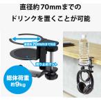 エレコム HP-DSDSKDBK ヘッドホンスタンド クランプ式 360度回転 ドリンクホルダー付 ブラック