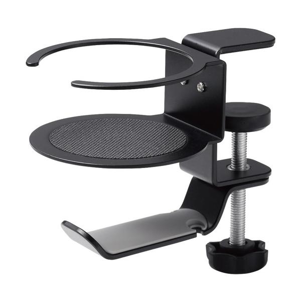 - 【商品解説】●ヘッドホンとドリンクをまとめて収納できる、ドリンクホルダー付きのヘッドホンスタンドです。 ヘッドホンのハンガー部は360度回転可能でデスク下に収納できるので、使用したいときだけデスク下からヘッドホンを取り出すことができます。 クランプ式で、デスク下にしっかり取り付けられます。 天板厚み約50mmまでのデスクに対応します。 直径約70mmまでのドリンクを置くことができます。 ハンガー部にはプラグやコードを引っ掛けることができるフックが付いています。【スペック】●型式:HP-DSDSKDBK(HPDSDSKDBK)●JANコード:4549550230902仕様1:[対応機種]ヘッドバンド幅約50mm以下のヘッドホン材質:アルミ、シリコン外形寸法:幅約85mm×奥行約135mm×高さ約95mm重量:約170g耐荷重:約9kgこの商品は宅配便でお届けする商品です出荷可能日から最短日時でお届けします。※出荷完了次第メールをお送りします。配送サービス提供エリアを調べることができます「エリア検索」をクリックして、表示された画面にお届け先の郵便番号7桁を入力してください。ご購入可能エリア検索お買い上げ合計3,980円以上で送料無料となります。※3,980円未満の場合は、一律550円(税込)となります。●出荷可能日から最短日時でお届けします。(日時指定は出来ません。) ※お届け時に不在だった場合は、「ご不在連絡票」が投函されます。 「ご不在連絡票」に記載された宅配業者の連絡先へ、再配達のご依頼をお願いいたします。●お届けは玄関先までとなります。●宅配便でお届けする商品をご購入の場合、不用品リサイクル回収はお受けしておりません。●全て揃い次第の出荷となりますので、2種類以上、または2個以上でのご注文の場合、出荷が遅れる場合があります。詳細はこちら■商品のお届けについて商品の到着日については、出荷完了メール内のリンク(宅配業者お荷物お問い合わせサービス)にてご確認ください。詳しいお届け目安を確認する1度の注文で複数の配送先にお届けすることは出来ません。※注文時に「複数の送付先に送る」で2箇所以上への配送先を設定した場合、すべてキャンセルとさせていただきます。