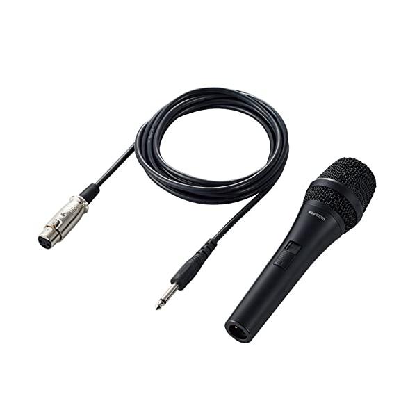 エレコム ダイナミックマイクロホン ボーカルマイク ミュート機能付き φ6.3mm接続 標準モノラルプラグ ケーブル着脱可 ブラック HS-MC
