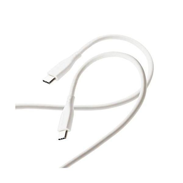 - エレコム MPA-CCSS20WH USB-C to USB-C 充電ケーブル 2m PD対応 最大60W 超急速 シリコン素材 なめらか 柔軟性 高耐久 ホワイト ●USB Type-C(TM)端子を搭載しているパソコン及び充電器・モバイルバッテリーなどに、USB Type-C(TM)端子を搭載しているスマートフォンやタブレットを接続し、充電やデータ転送ができるUSB2.0ケーブルです。※USB Type-C and USB-C are trademarks of USB Implementers Forum●シリコン素材を採用した柔らかく、なめらかな手触りのUSBケーブルです。●絡みにくく、取り回しがしやすいです。●断線しにくい高密度配線ケーブルを採用しています。●USB Power Deliveryに対応し、最大60W(20V/3A)の大電流を送電可能です。※ご使用になるパソコンやAC充電器などの性能によって、供給される電流値が異なります。 【仕様】コネクタ形状1:USB Type-C(TM) オスコネクタ形状2:USB Type-C(TM) オス対応機種:USB Type-C(TM)端子を持つパソコン・充電器・モバイルバッテリーおよび、USB Type-C(TM)端子を持つスマートフォン・タブレットなど※USB Type-C and USB-C are trademarks of USB Implementers Forumケーブル長:2.0m ※コネクター含まずケーブル太さ:4.3mm規格:USB2.0規格正規認証品対応転送速度:最大480Mbps ※理論値パワーデリバリー対応:○プラグメッキ仕様:金メッキピンシールド方法:2重シールドカラー:ホワイトパッケージ形態:袋+ステッカー環境配慮事項:EU RoHS指令準拠(10物質)、簡易パッケージ