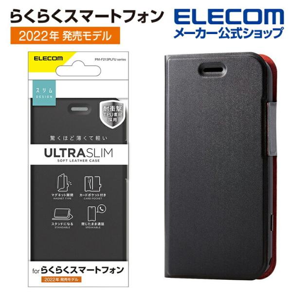 らくらくスマートフォン (F-52B) 用 ソフトレザーケース 薄型 磁石付 F-52B ケース カバー ブラック┃PM-F213PLFUBK エレコム 在庫処分
