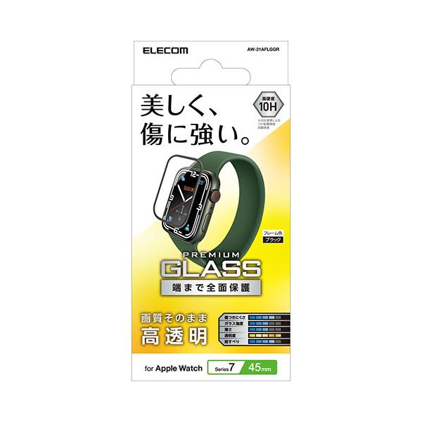 エレコム Apple Watch Series 7 45mm フルカバーガラスフィルム 高透明 AW-21AFLGGR