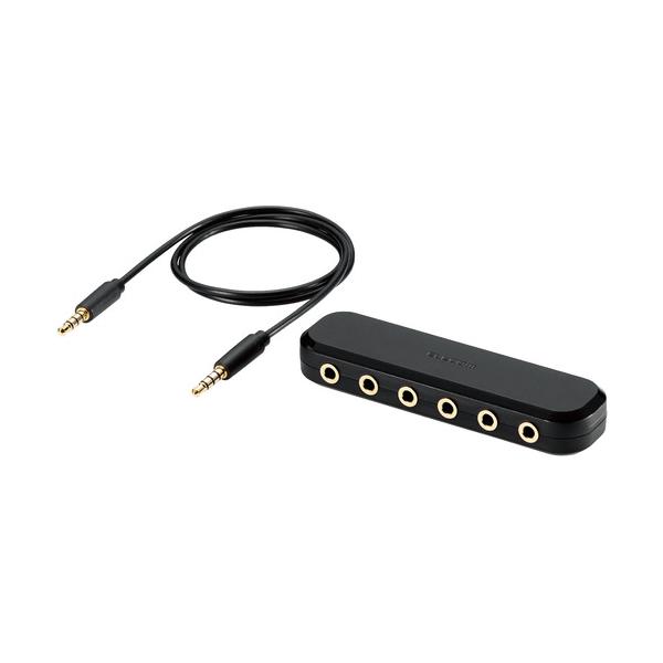 エレコム EHP-35AD05BK イヤホンジャック マルチイヤホンスプリッター 5分配 φ3.5mm 4極 ミニジャック×6 ボイスチャット 通話 ブラック