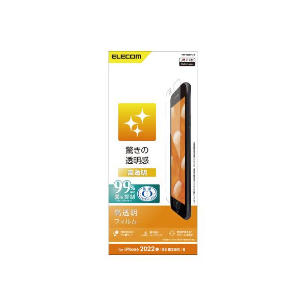 - SEARCH WORD:iPhone SE 第3世代 iPhone SE 第2世代 iPhone 8 iPhone 7 iPhone 6s iPhone 6 アイフォン アイフォーン 液晶 保護 フィルム フイルム シート 液晶フィルム 液晶シート 液晶フイルム 保護フィルム 保護シート 保護フイルム 液晶保護フィルム 液晶保護シート 液晶保護フイルム商品概要:iPhone SE 第3世代、iPhone SE 第2世代、iPhone 8、iPhone 7、iPhone 6s、iPhone 6の液晶画面をキズや汚れから守る、高透明タイプの液晶保護フィルムです。つやのある高透明タイプで、液晶画面を鮮やかに彩ります。貼り付け面にシリコン皮膜をコーティングし、接着剤や両面テープを使わずに貼り付け可能な自己吸着タイプです。貼りやすく、貼り直しも可能です。時間の経過とともに気泡が目立たなくなる特殊吸着層を採用したエアーレスタイプです。指紋汚れが目立ちにくい指紋軽減加工を施しています。端末の形状に合わせたサイズにカット済みなので、パッケージから取り出してすぐに使用可能です。フィルムを貼ったままでも本体操作ができるタッチスクリーン入力に対応しています。商品仕様:■メーカー:エレコム■JANコード:4549550243643■商品名:iPhone SE 第3世代/SE 第2世代/8/7/6s/6 液晶保護フィルム 抗菌加工 高透明 フッ素コート ハードコート エアーレス■型番:PM-A22SFLTG■対応機種:iPhone SE 第3世代、iPhone SE 第2世代、iPhone 8、iPhone 7、iPhone 6s、iPhone 6■セット内容:液晶保護フィルム(高透明仕様)×1、ホコリ取りシール×1、クリーニングクロス×1■材質:接着面 シリコン、外側 PET■ご注意事項:※こちらの商品はお客様のご都合によるご返品、交換等はご遠慮いただいております。※商品の仕様、および外観、パッケージ等は予告なく変更される場合がございます。※画像はイメージです。コーディネイトなどに使用している商品は含まれません。※本商品は代金引換払いでのお支払いは承れません。※商品概要、仕様、サービス内容及び企業情報などは商品発表時点のものです。※最新の情報に関しましては、メーカーサイトをご覧ください。※発売前予約商品についてはメーカーの商品製造数により納期が遅れる場合やご注文キャンセルをお願いする場合がございます。